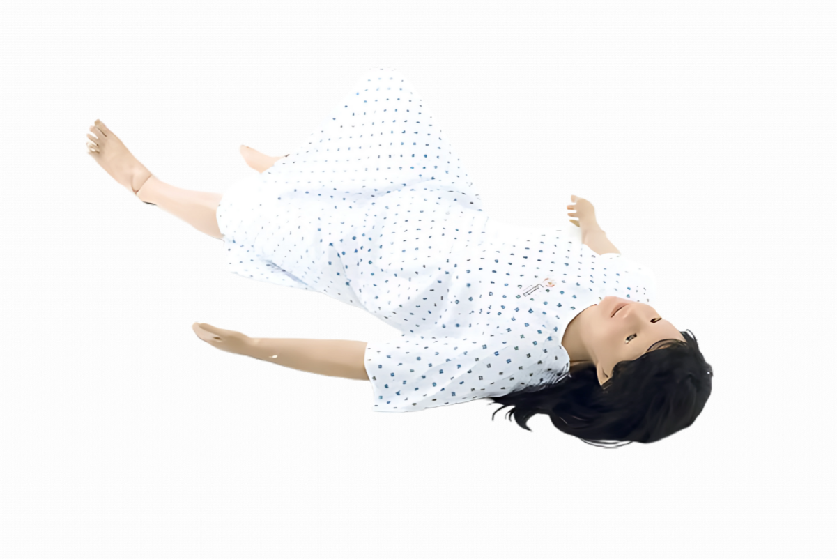 Manechin adult sex feminin pentru exersarea îngrijirii pacientului și dezvoltarea abilităților de bază în nursing, precum pansamente, injecții, monitorizare, igienă și poziționare.