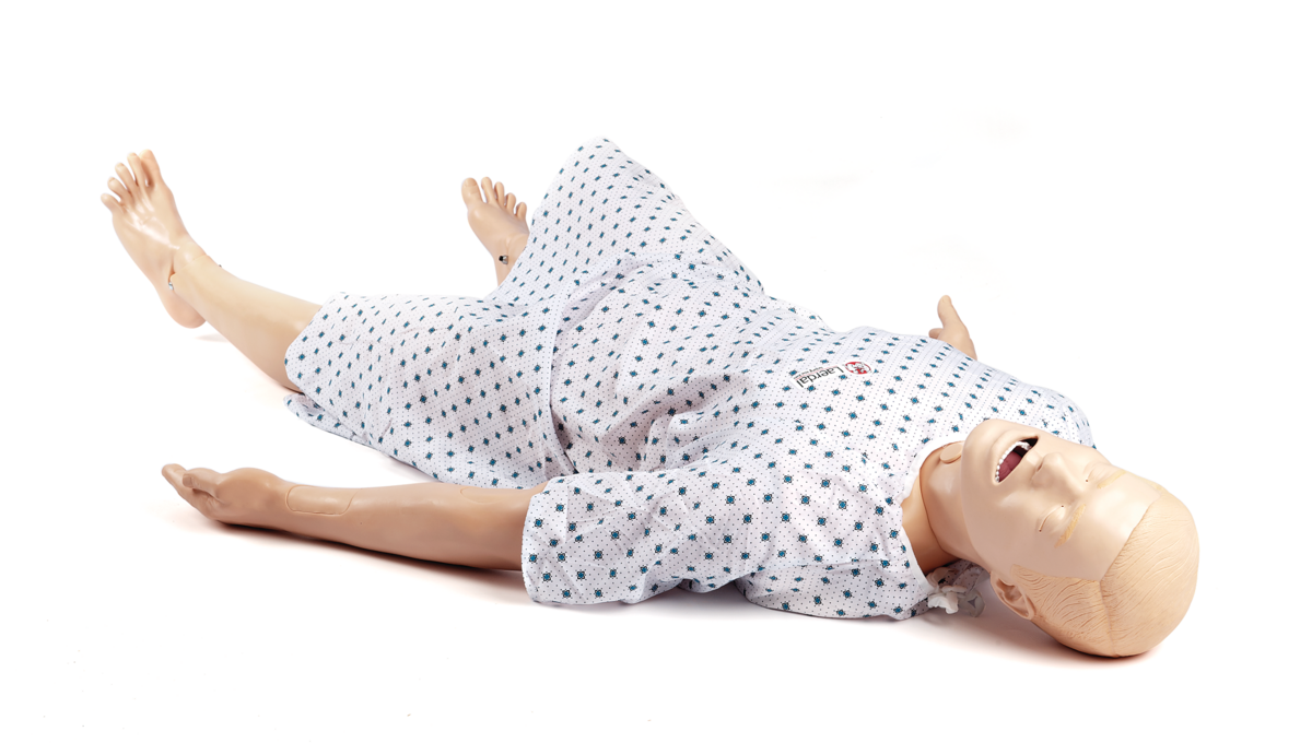 Manechin adult sex masculin pentru exersarea îngrijirii pacientului și dezvoltarea abilităților de bază în nursing, precum pansamente, injecții, monitorizare, igienă și poziționare.