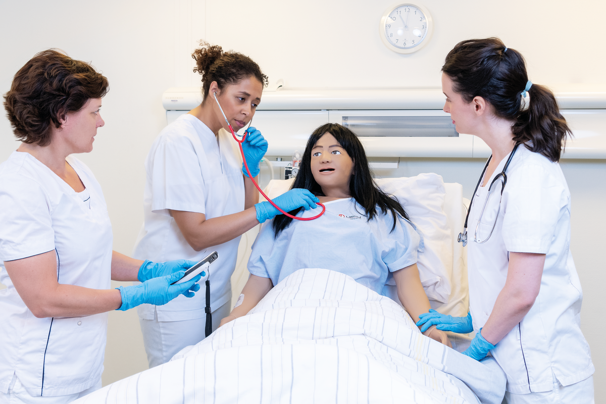Simulator avansat pentru formarea în îngrijiri generale, comunicare cu pacientul și intervenții clinice. Include funcții interactive și scenarii predefinite.