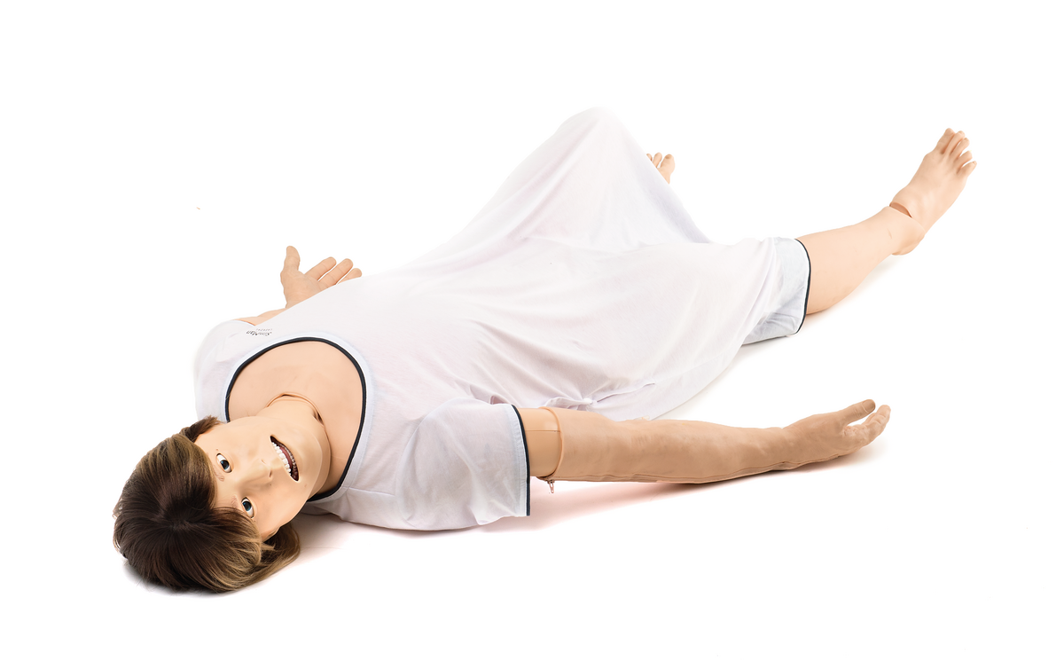 Simulator de pacient adult realist pentru scenarii medicale complexe, conceput pentru practica în suport vital avansat (ALS). Reproduce cu acuratețe răspunsurile fiziologice ale unui pacient real și permite instruirea în intervenții critice, comunicare în echipă și luarea rapidă a deciziilor.