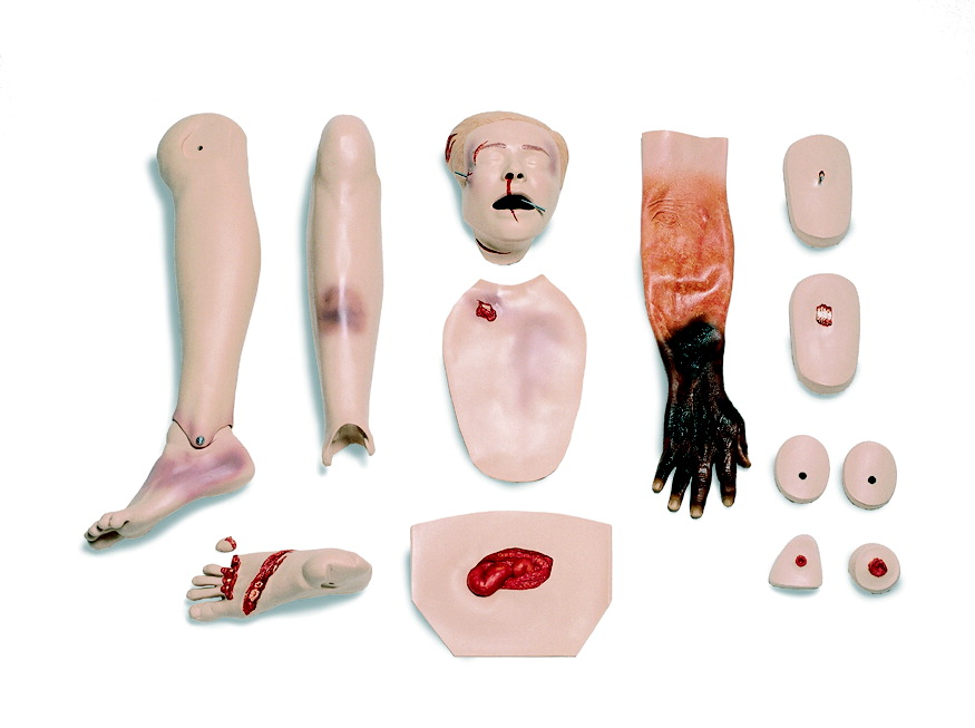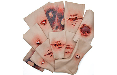 Seturi detaliate de răni realiste (tăieturi, plăgi penetrante, arsuri, fracturi expuse și alte leziuni traumatice), reutilizabile, aplicabile pe piele sau pe manechine. Ideale pentru instruirea în aplicarea pansamentelor, hemostază și triaj.